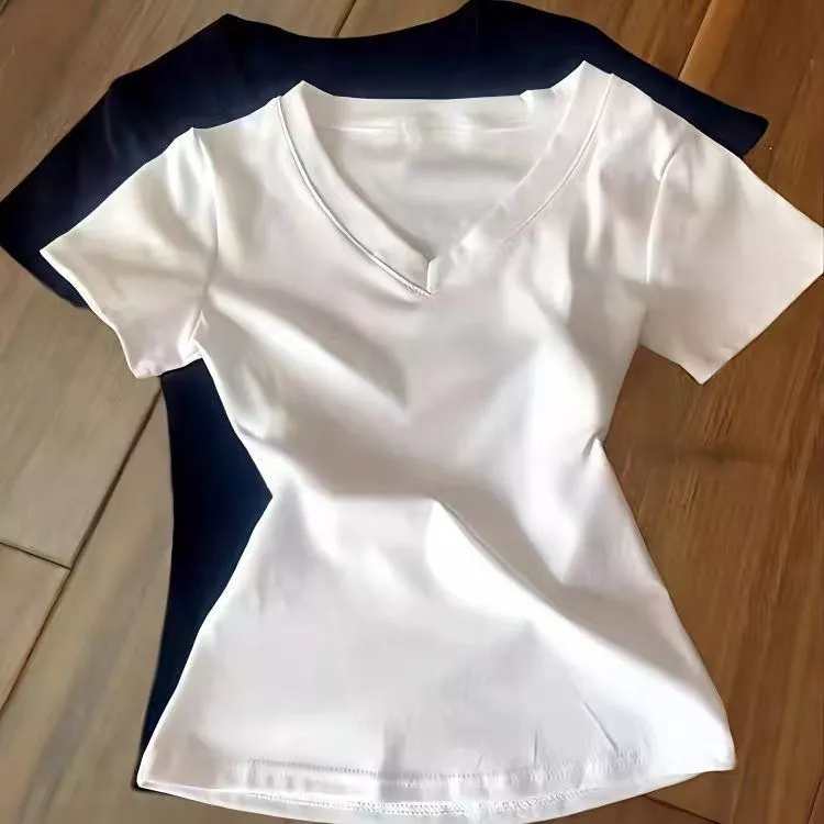 🔥 Áo thun nữ cổ V tay ngắn đen trắng phong cách Hàn, thoáng mát, mặc nhà hay dạo phố đều ok đang giảm giá!