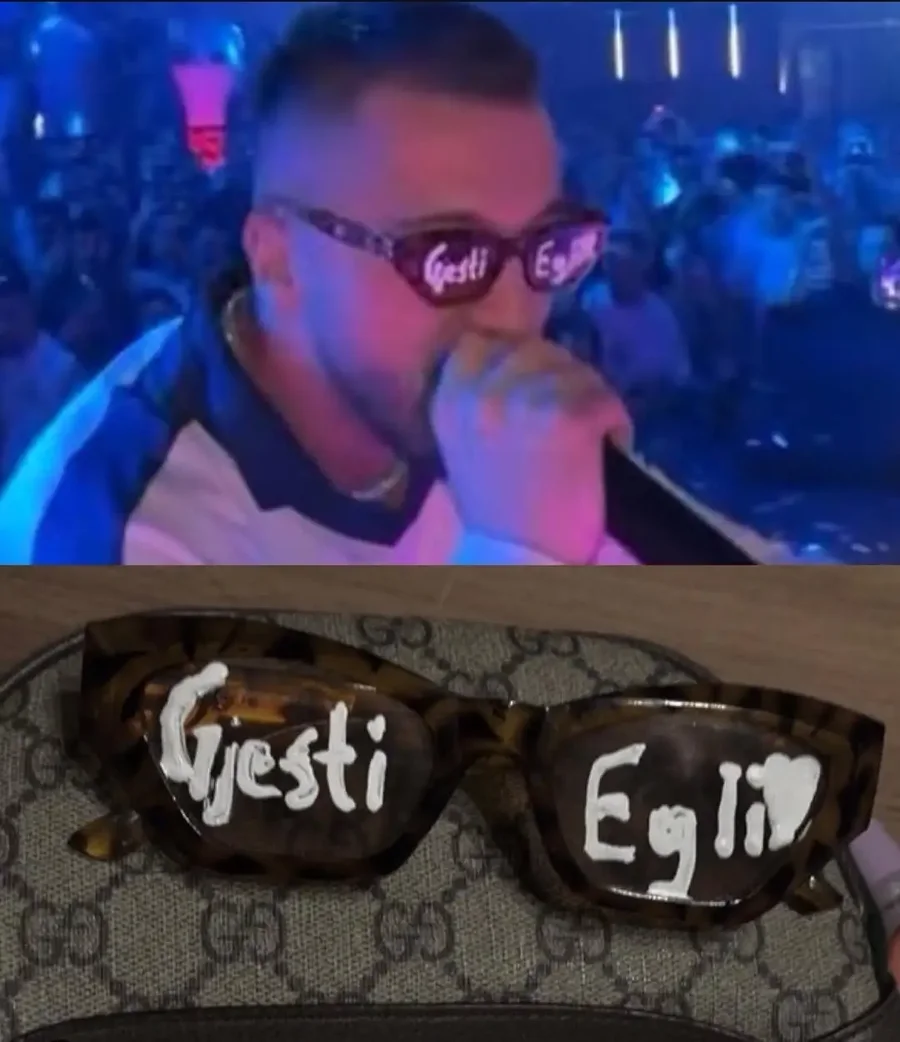 Ca sĩ Gjesti đã có một buổi biểu diễn đáng nhớ tại Mitrovica, nơi anh nhận được sự hoan nghênh nồng nhiệt từ khán giả. Tuy nhiên, sự kiện thu hút sự chú ý của công chúng không chỉ dừng lại ở đó. Một món quà đặc biệt từ người hâm mộ đã khiến anh phải nổi bật lên: một cặp kính với thiết kế độc đáo, ghi tên ‘Gjesti’ trên một mắt kính và ‘Egli’ trên mắt kính kia, được ngăn cách bởi một hình trái tim.