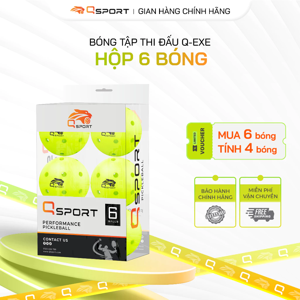 Giới Thiệu Hộp 6 Bóng Tập Thi Đấu Pickleball Qsport Q-Exe 40 Lỗ