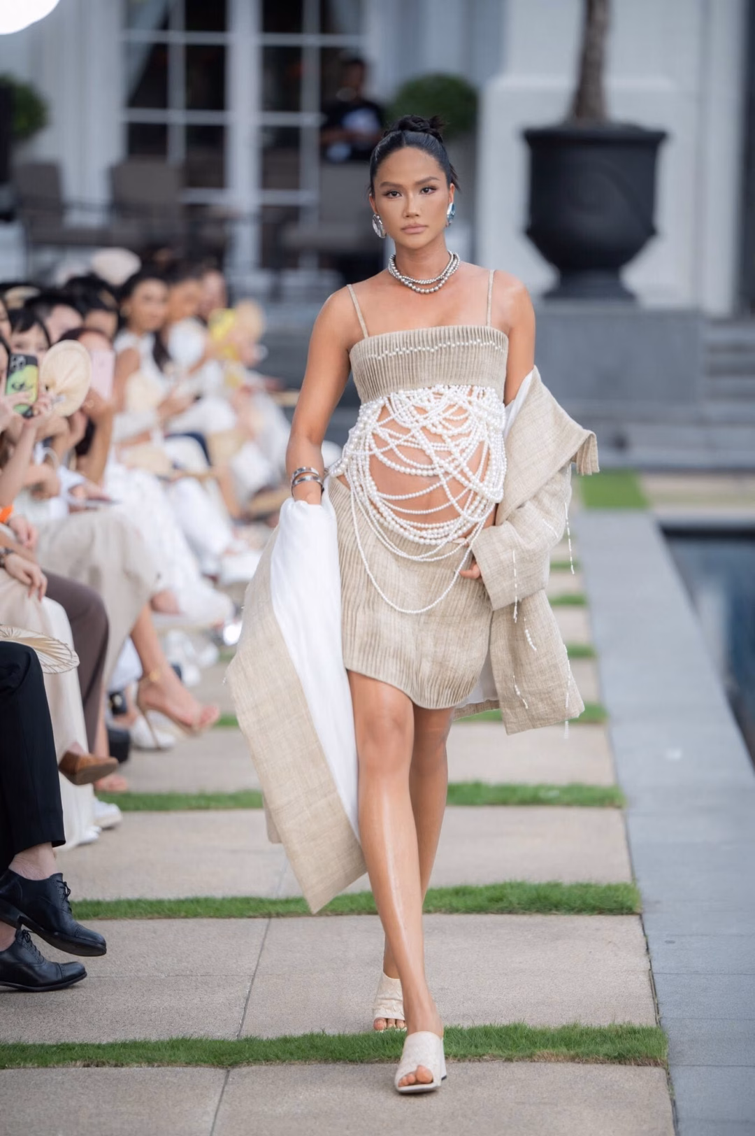 Trong sự kiện này, H’Hen Niê diện áo croptop phối cùng chân váy, tự tin phô diễn chiếc bụng tròn ở tháng thứ 6 của thai kỳ. Cô catwalk uyển chuyển trên đôi giày cao gót trắng và tỏa sáng với thần thái đỉnh chóp, chuyên nghiệp của một người mẫu kỳ cựu. Mặc dù đang mang thai, H’Hen Niê vẫn thể hiện sự chuyên nghiệp và chăm chỉ với lịch trình dày đặc, khiến khán giả không khỏi lo lắng về sức khỏe của cô.