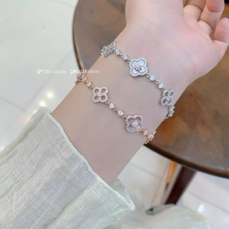 🔥 Lắc tay bạc DMJ Silver, lắc tay cỏ 4 lá khảm đá xà cừ cao cấp đang giảm giá!