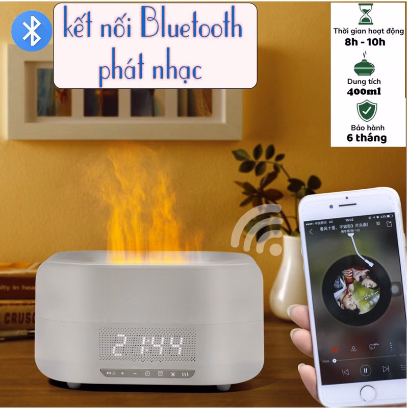 🔥 Máy xông tinh dầu phòng ngủ – phun sương tạo ẩm ngọn lửa FLAME 400ml, tích hợp loa bluethoot, đồng hồ digital đang giảm giá!