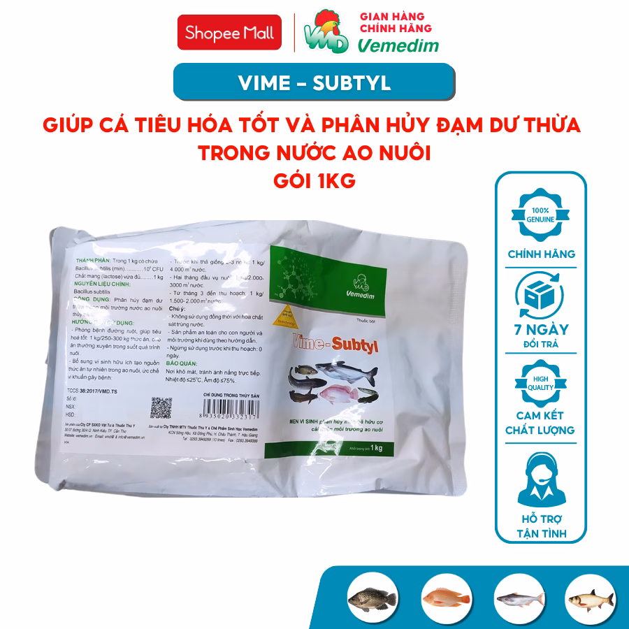 🔥 Vemedim Vime-subtyl cá, vi sinh cải thiện môi trường ao nuôi, gói 1kg đang giảm giá!