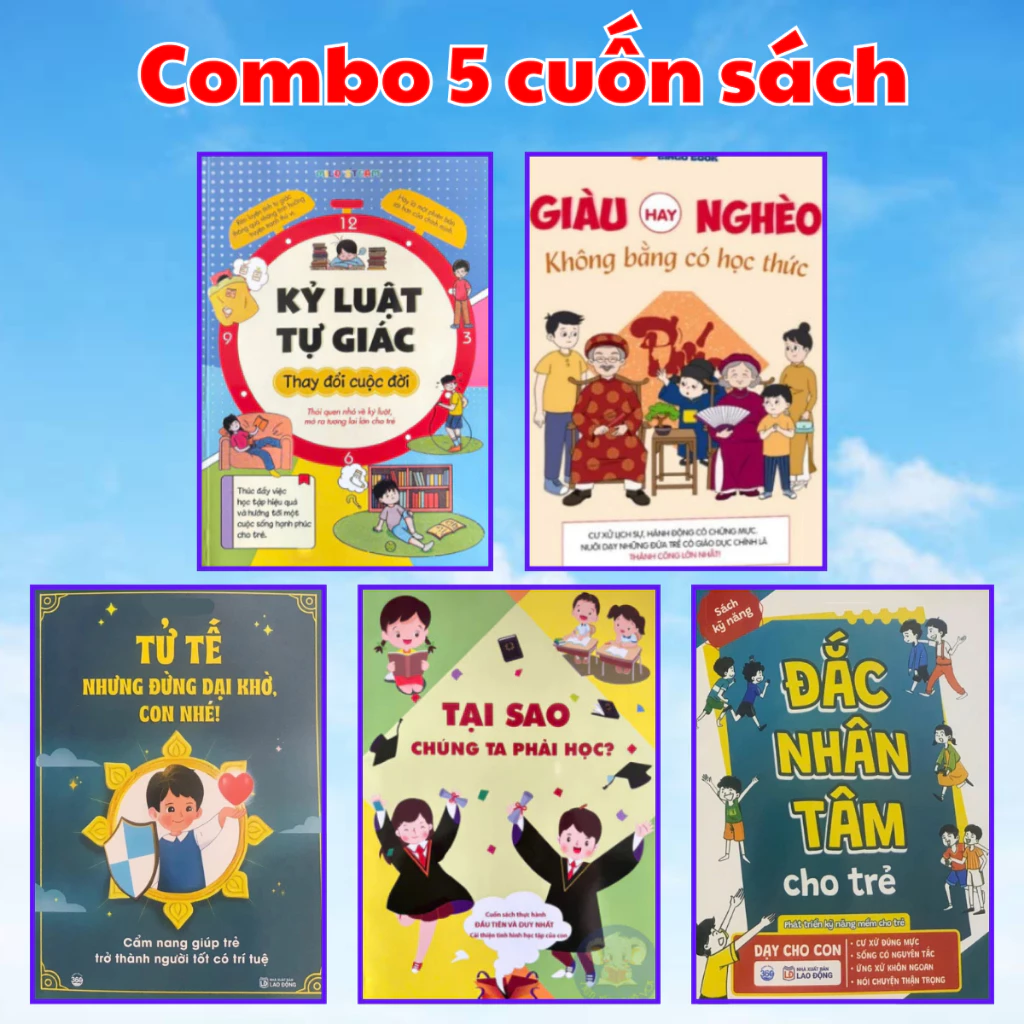 🔥 Sách – Combo 5 cuốn Kỷ Luật Tự Giác + Giàu Hay Nghèo + Đắc Nhân Tâm Cho Trẻ + Tử Tế + Tại Sao Chúng Ta Phải Học đang giảm giá!