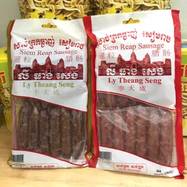 - Lạp xưởng heo bò Campuchia: Sự cân bằng hoàn hảo giữa thịt heo và bò.