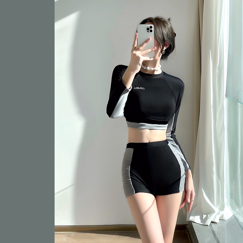 Khám phá sản phẩm: Bikini 2 mảnh INFLACHI cho nữ đi biển du lịch tay dài kín đáo che khuyết điểm chống nắng thời trang