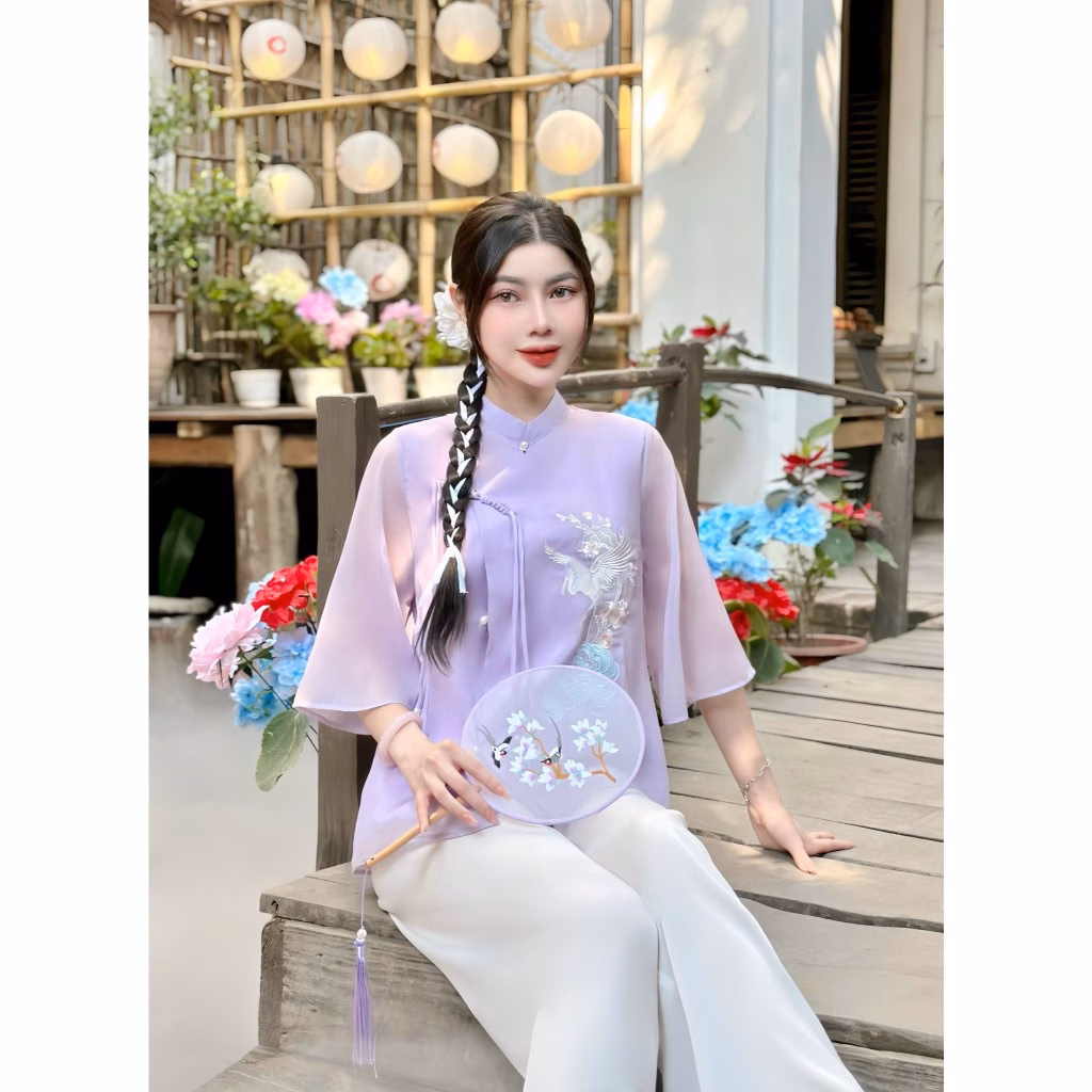 - Thiết kế đơn giản và thanh lịch với họa tiết thêu chim hạc tinh tế