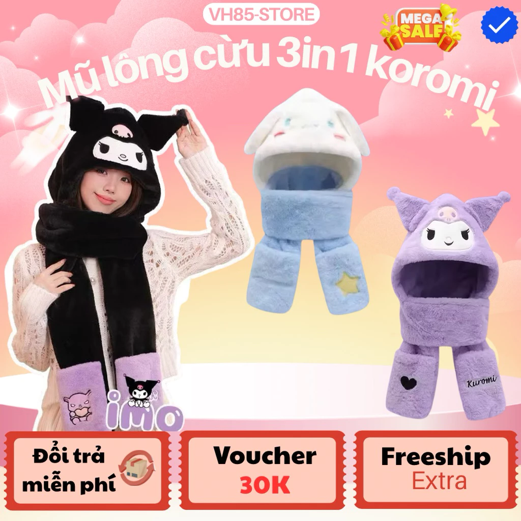🔥 Mũ Lông Cừu 3in1 Hình Kuromi Siêu Kute Kèm Khăn Quàng Cổ & Sỏ Tay Kiểu Dáng Hàn Quốc đang giảm giá!