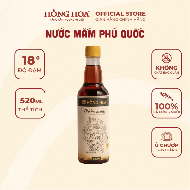 🔥 Nước Mắm Phú Quốc Hồng Hoa 18 độ đạm 520ml, Nước Mắm Cá Cơm Truyền Thống đang giảm giá!