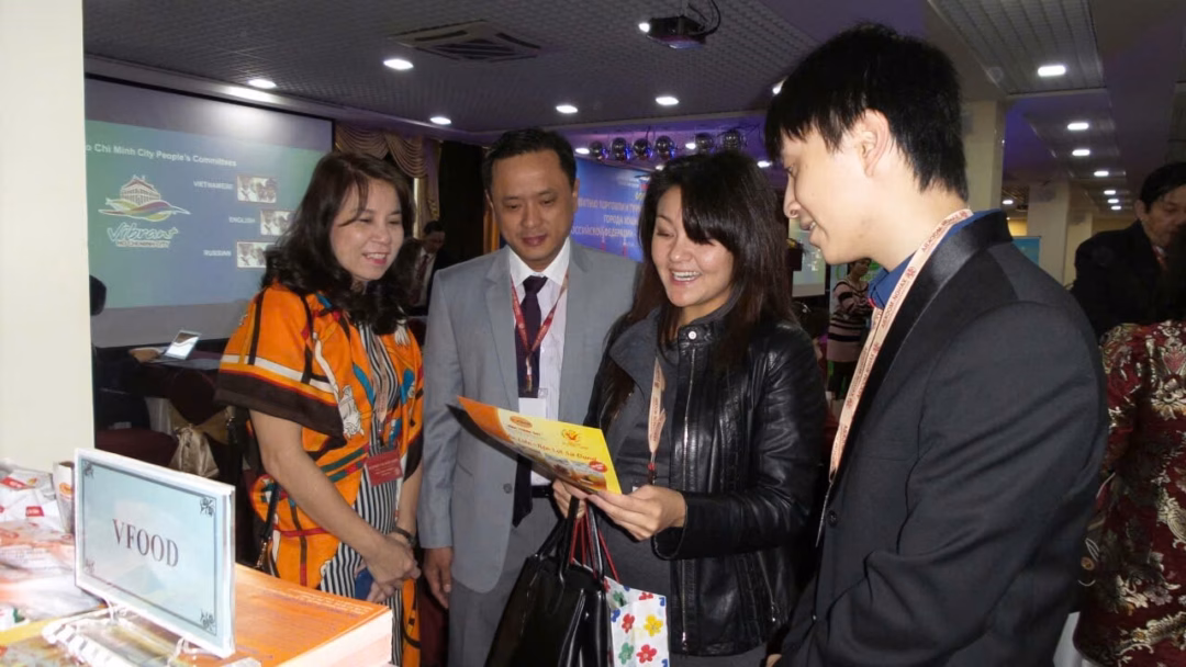 Ông Trương Chí Thiện giới thiệu sản phẩm V.Food đến khách nước ngoài