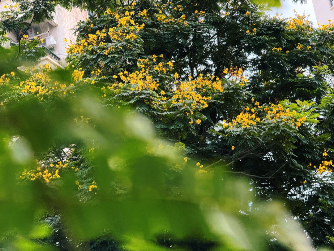 Khi mùa hè về, Hà Nội không chỉ rực rỡ với sắc đỏ của phượng vĩ mà còn được tô điểm bởi sắc vàng dịu dàng của phượng vàng. Loài hoa này đã trở thành một phần không thể thiếu của bức tranh đô thị.