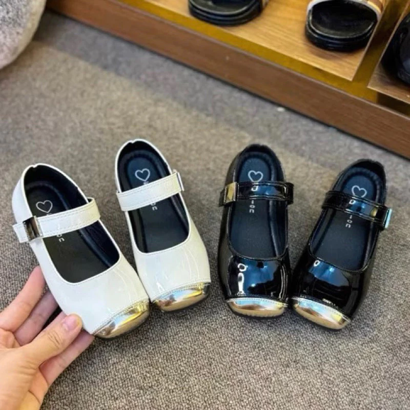 🔥 Giày búp bê da bóng mềm mũi vàng cho bé gái-màu đen đang giảm giá!