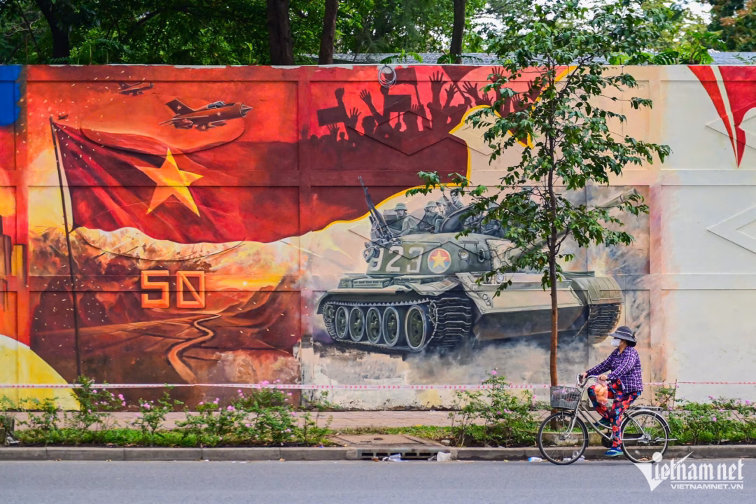 Một công trình nghệ thuật độc đáo và đầy ý nghĩa đang trở thành điểm đến thu hút sự chú ý của nhiều người tại thành phố Hồ Chí Minh. Trên đường Nguyễn Hữu Cảnh, phường Sài Gòn, một loạt tranh bích họa hoành tráng đang tái hiện lại các khối diễu binh mừng 50 năm thống nhất đất nước. Những bức tranh này trải dài trên một bức tường bê tông dài 300m, sinh động tái hiện các hình ảnh xe quân sự, chiến sĩ, máy bay, pháo binh…